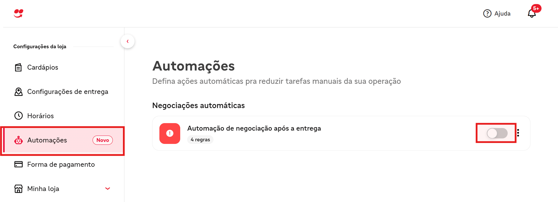 Importante: ao desativar, todas as novas solicitações voltam ao modo manual, mas as negociações em andamento mantêm o tratamento automático.
