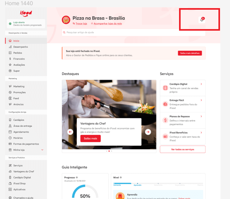 Criada junto com a primeira turma do Fórum de Restaurantes, a Central de notificações segue a agenda de Melhoria Contínua do iFood para possibilitar que nossos parceiros tenham as principais informações para a gestão e operação do negócio e, claro, notícias sobre as melhorias realizadas na plataforma e como utilizá-las para impulsionar ainda mais seus negócios.