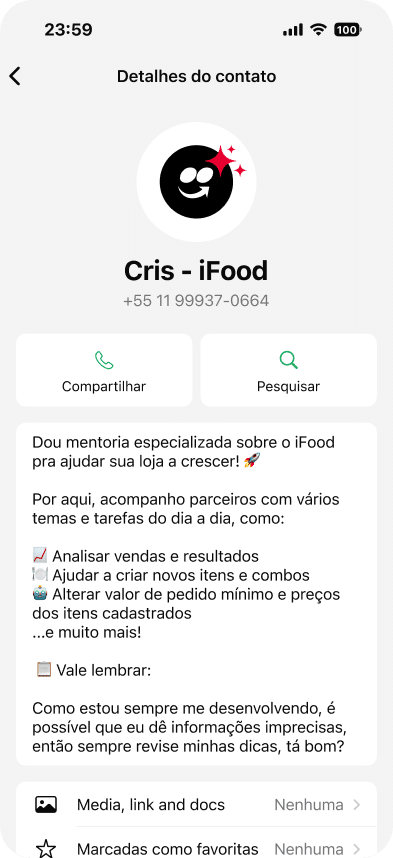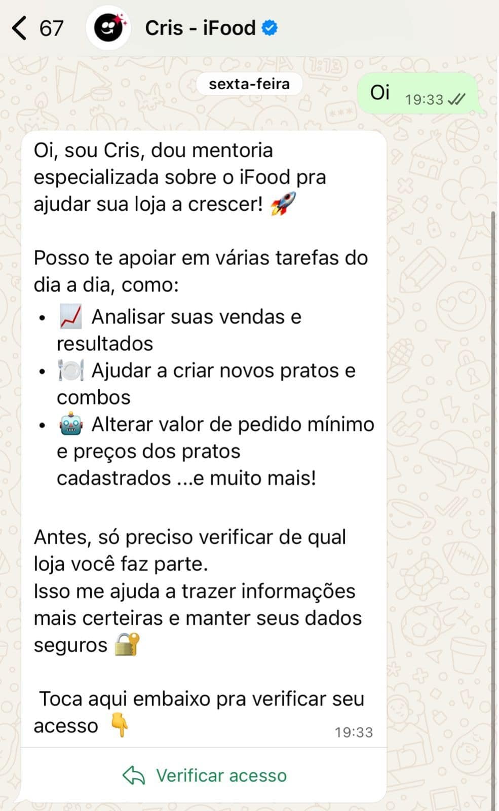 Gerir um restaurante no iFood pode ser desafiador, especialmente quando se trata de interpretar dados de performance e transformá-los em ações que realmente aumentem suas vendas. É pensando nisso que eu surgi. Prazer, sou Cris, uma assistente virtual inteligente que vai mudar a forma de gerenciar seus negócios na plataforma.
