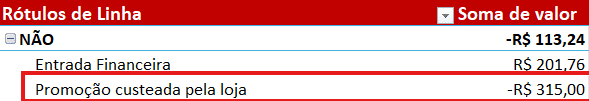 - Selecionar o lançamento ‘descricao_lancamento = Promoção incentivada pela loja’;