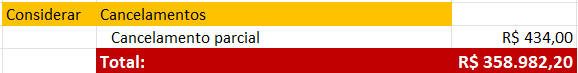Por fim, você ajusta o valor com base no que foi cancelado, isso porque queremos ver o ponto de partida dos valores, os cancelamentos são contabilizados primeiramente para depois serem deduzidos.
