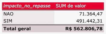 - Selecionar ‘impacto_no_repasse = NAO’ ou ‘responsavel_transacao = LOJA’;