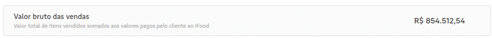 O valor bruto das vendas é tudo que foi transacionado naquele período selecionado, será a soma de todas as entradas financeiras (loja e iFood) e todos os incentivos transacionados (com e sem impacto no repasse).