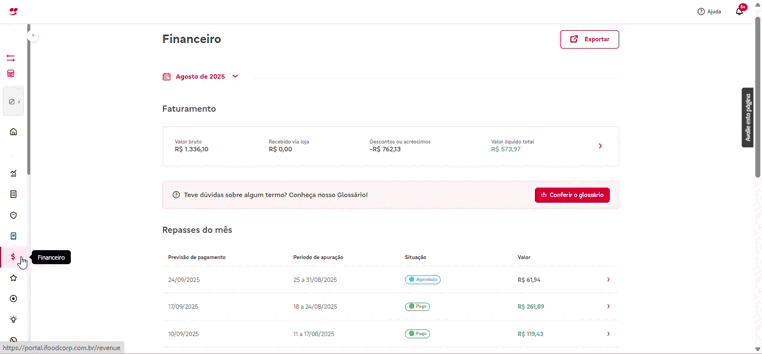 Na prática, a conciliação financeira consiste em analisar, comparar e entender o detalhamento dos lançamentos financeiros iFood e Loja.